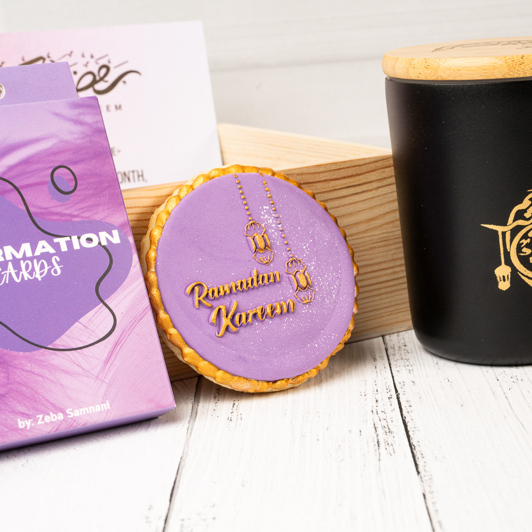 Ramadan Hampe rwith Thermal Mug, Affirmation Card,Digital Prayer Bead, Cookie and Card